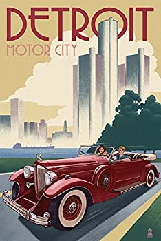 【中古】【輸入品・未使用】デトロイト、ミシガン州???ビンテージ車とSkyline 24 x 36 Giclee Print LANT-48146-24x36