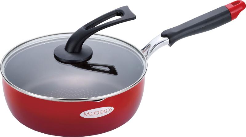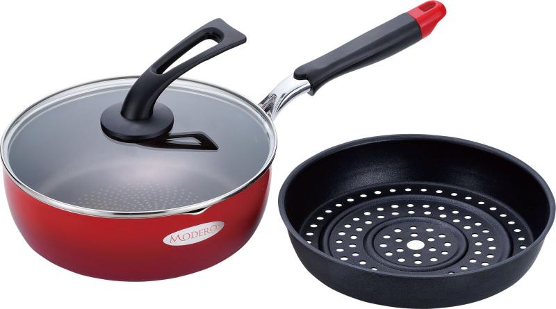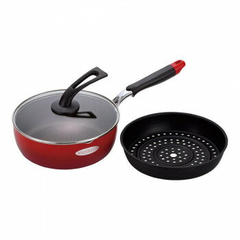 和平フレイズ深型フライパンディープパン24cmIH対応ガス蓋付蒸し目皿付レッド赤PFOAフリーふっ素樹脂加工モデロスMM-9758
