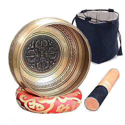 NGEシンギングボウル セット 口径11cm スティック/座布団/巾着袋付き 十字金剛杵彫柄 倍音 仏教 ヒーリング リラックス ヨガ 瞑想 チャクラ 癒し 除霊 浄化 チベット ネパール 手作り シンギングボール (タイプ1)