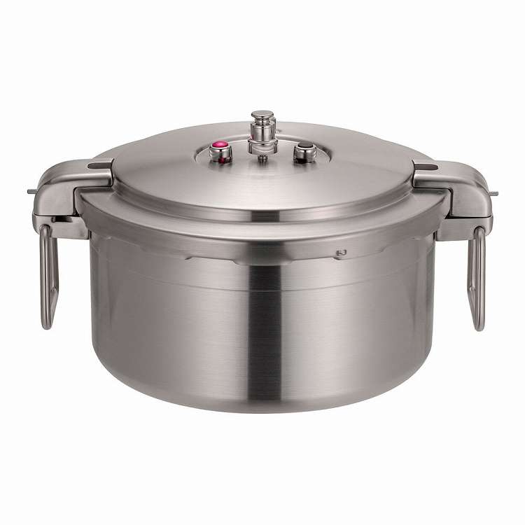 ◆プロ仕様 機能美あふれるオールステンレス製で、清潔、強固。取っ手など部品の焦げ付きの心配がありません。 ◆新機能 安全性能をさらに高めるために、PROBIG4シリーズからロッキングバルブを追加しました。 ◆ロッキングバルブ 圧力がかかっているときは、フタが聞かないようロッキングバルブがフタをロックします。 ◆7つの安全装置 フロート式安全装置、特別安全装置、圧力調整装置(おもり・ノズル)、スリット式安全装置、バルブ式安全装置、ロッキングバルブ(左右) ◆大口径で大容量 業務用大容量なので、食材の下ごしらえからラーメンスープまで対応出来ます。 ◆IH(電磁調理器)調理器対応 ガスレンジは勿論、IH(電磁調理器)調理器でご使用いただけます。 ◆底が三層構造 熱伝導の良いアルミを丈夫なステンレスで挟み込んだ底三層仕様で、お鍋の底がこげつきにくい。 ◆ワイヤーハンドル、本体表面はサテン仕上げ (16L/30Lのみ) [ 仕様 ] ◇作動圧力:高圧約98kPa(約2気圧) ◇商品サイズ(外寸):約W470×D380×H410mm ◇本体サイズ(内寸):直径約345×深さ330mm ◇商品重量:約8.1kg ◇水の容量(最大調理量):約20.0L ◇水の容量(豆類最大量):約10.0L ◇白米最大炊量:約28合 ◇大豆最大煮量:約2500g ◇付属品:取扱説明書兼クッキングガイド・掃除ピン・調理上の注意ポスター ◇生産国:マレーシア 【 業務用プロビッグ4 NPDDシリーズ 使用上のご注意 】 このモデル (NPDD シリーズ)は、同シリーズの本体及び、ふたの組み合わせでしかご使用いただけません。 このモデルには本体取っ手2箇所、ふた2箇所に 【D】のマークが入っております。 必ずふたを閉める際にご確認いただきますようお願いいたします。
