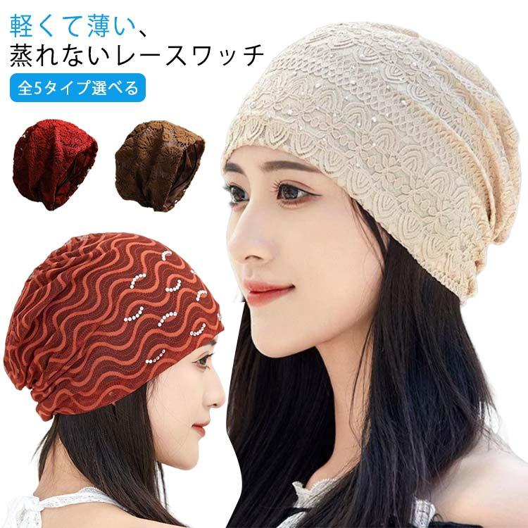 涼し ビーニー ワッチキャップ ニット帽 おしゃれ レースフラワー 医療用帽子 全5タイプ 全5タイプ レディース 帽子 夏用