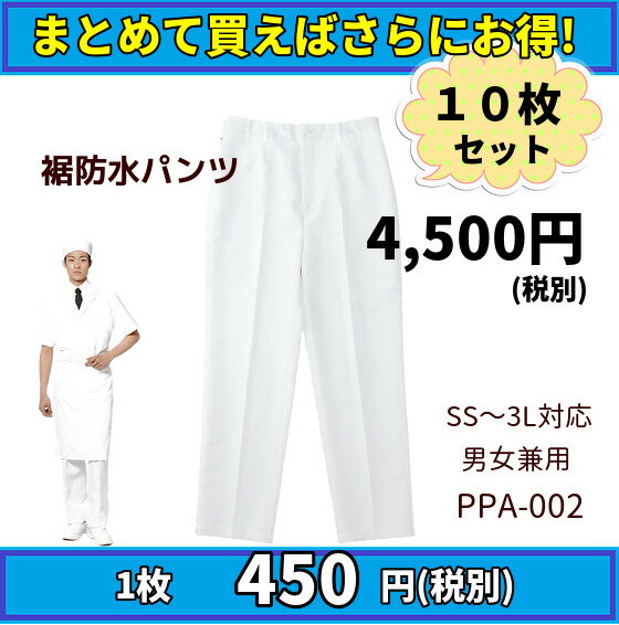 【当日発送可】【まとめ売り】 コックパンツ 防水パンツ 作業パンツ 作業着 10枚セット お買い得 白 ホワイト 防水加工 男女兼用 大口店舗 ユニフォーム 制服 調理服 飲食店 和食屋 割烹 給食 調理員 厨房 食堂 業務用 厨房 うどん ラーメン 日本料理/60