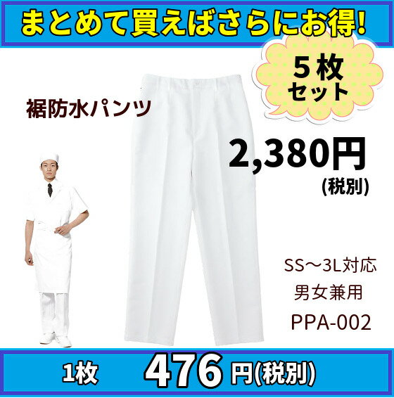 【当日発送可】【まとめ売り】 コックパンツ 防水パンツ 作業パンツ 作業着 5枚セットお買い得 白 ホワイト 防水加工 男女兼用 大口店舗 ユニフォーム 制服 調理服 飲食店 和食屋 割烹 給食 調理員 厨房 食堂 業務用 厨房 うどん ラーメン 日本料理/60