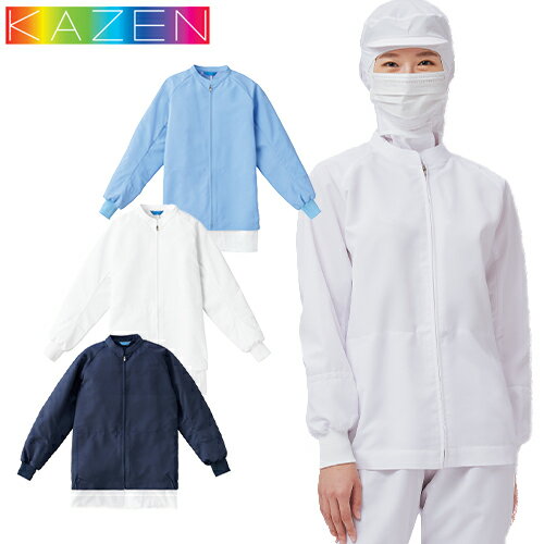 白衣 衛生衣 ジャンパー 男女兼用 KAZEN カゼン KZN400 食品衛生白衣 上着 作業着 作業服 コート 長袖 制服 ユニフォーム 食品 食品工場 食品加工 給食 調理 男性 女性 メンズ レディース 軽量 軽い