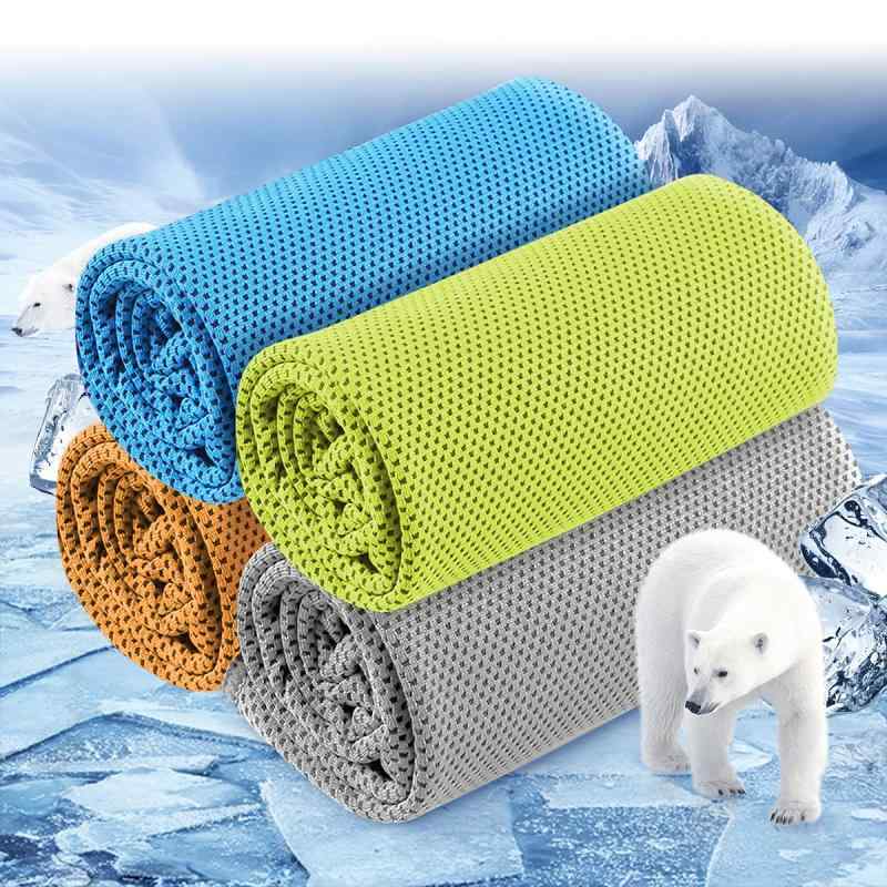 冷却タオル 冷感タオル クールタオル 熱中症対策 速乾タオル ポリエステル 超吸水 軽量 速乾 熱中症対策 UVカット 瞬間冷却 登山 ランニング ゴルフ アウトドア 4枚セット【優れたひんやり冷感素材】このクールタオルは、冷感繊維材質と独自の繊維構造で水分が蒸発すると表面の熱を吸収し温度を下げます。タオルを水で濡らし、しぼって振ればすぐにひんやり気持ちよくお手軽簡単な熱中症対策になります。濡れた状態で振れば何度も冷たくなりますので、暑い夏には手放せない一枚になりそうです。【UVカット効果・アウトドア】UVカット率98%で真夏の強い日差しから肌を保護します。頭や肩から掛けて体を冷やしつつ、日焼け防止も可能です。【吸水性抜群&濡れるとひんやり】素材は肌触りさわやかなメッシュ素材を使用し、冷却タオルは普通のタオルと比べ3-5倍の吸水力を持っている、また冷感タオルは水や汗に濡れるとひんやり冷たくなるこれが水や汗をすばやく吸収拡散します。タオルから水が蒸発するとき気化熱の作用で効率よく冷却効果が得られ、タオルがすぐにひんやり冷たくなるんです【抗菌防臭・洗濯可能】抗菌と防臭加工でいつでも清潔に使えます。洗濯機で洗えるので衛生面でも安心です。【多用途】夏の強い日差しからお肌を守ってくれるので、頭や肩から掛けて身体を冷やしつつ、日焼け防止もできます。また、自宅、アウトドア、室内運動、建築仕事、飲食仕事、トレーニング、ヨガ、登山、公園、釣り、ジョギング、サッカー試合、運動会、スポーツなどにも最適です。