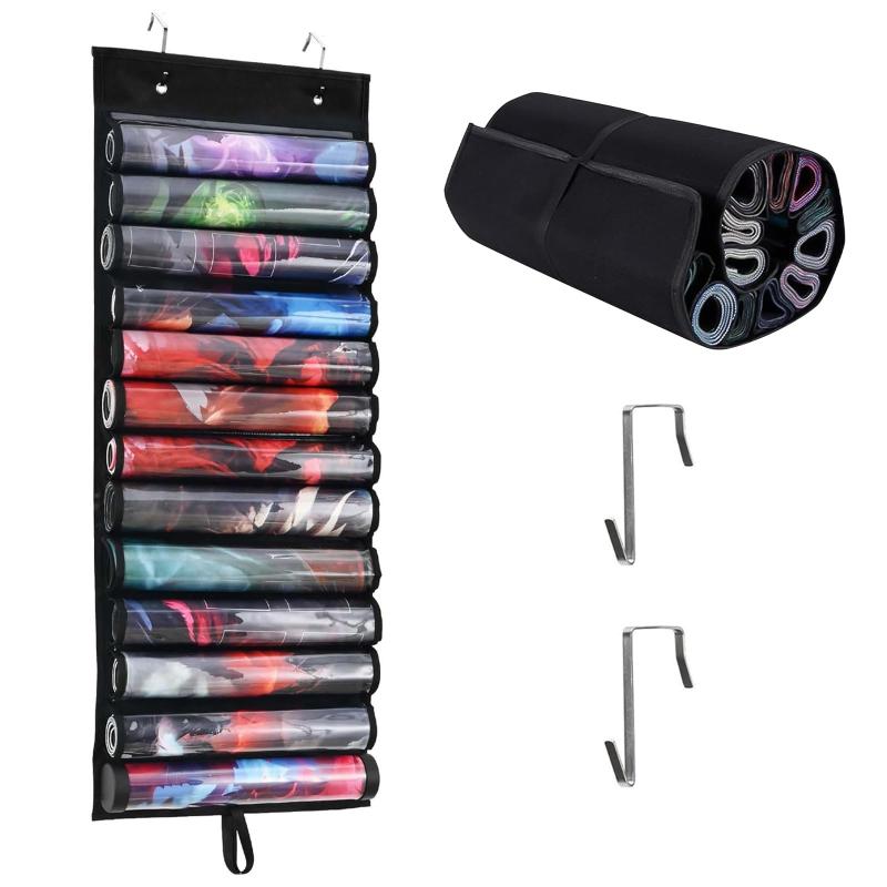 aninako プレイマットケース 壁掛け式 プレマ収納用 ゲームマット13枚収納可能 2つの金属フック付き スペースを節約 防塵 防水 吊り下げ 大容量 折りたたみ式 ポータブル (13収納口)