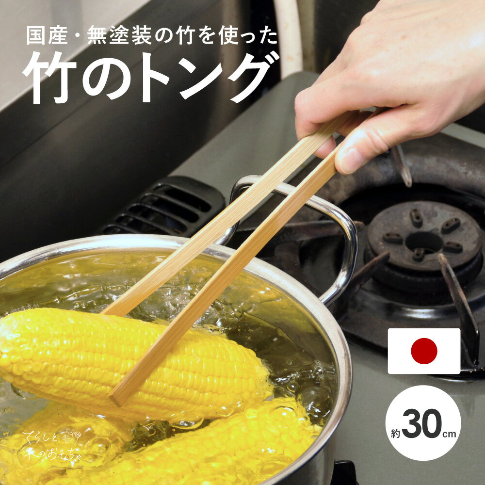 国産 日本製 鹿児島 竹トング 竹 竹製 トング 30cm 長い キッチン 無塗装 つかみやすい すべらない 菜箸トング 取り分け 耐熱 麺 酒井産業