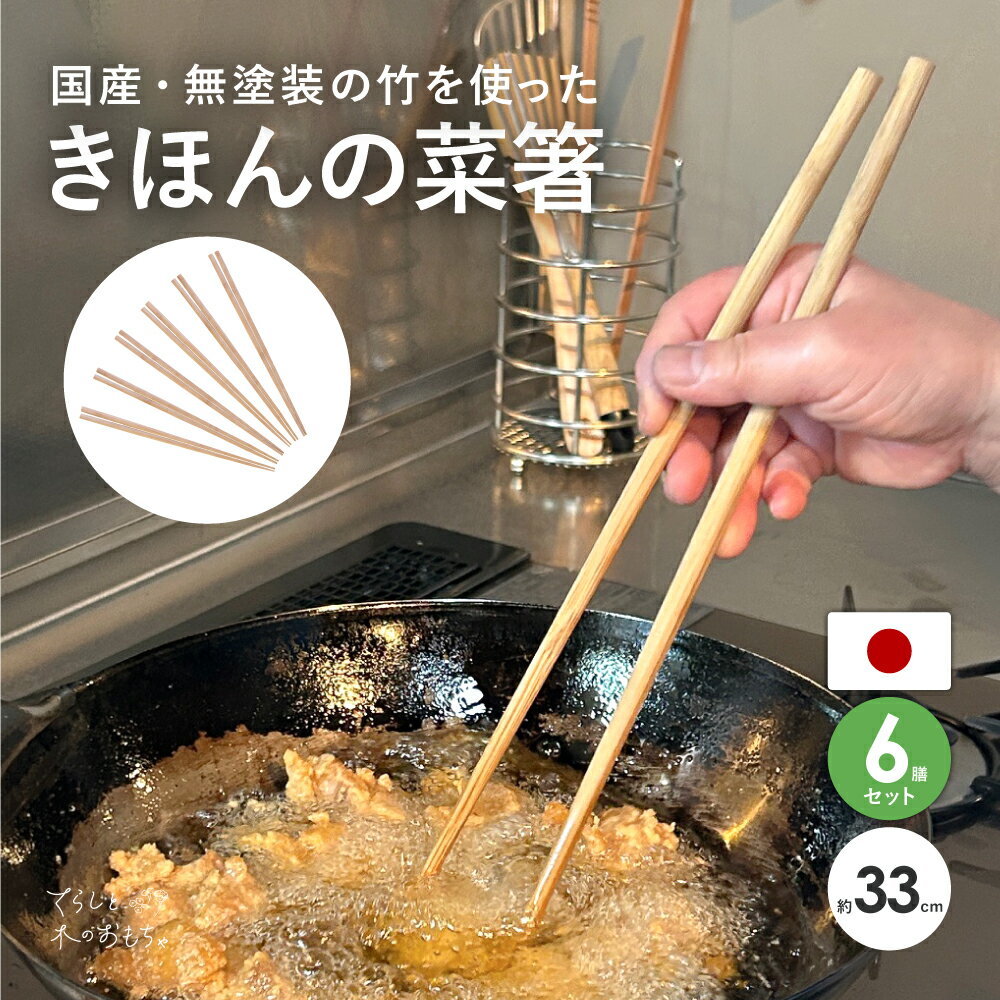 菜箸 日本製 竹 6膳 セット すべらない 無塗装 国産 33cm つかみやすい さいばし 菜ばし 太め 箸 酒井産業