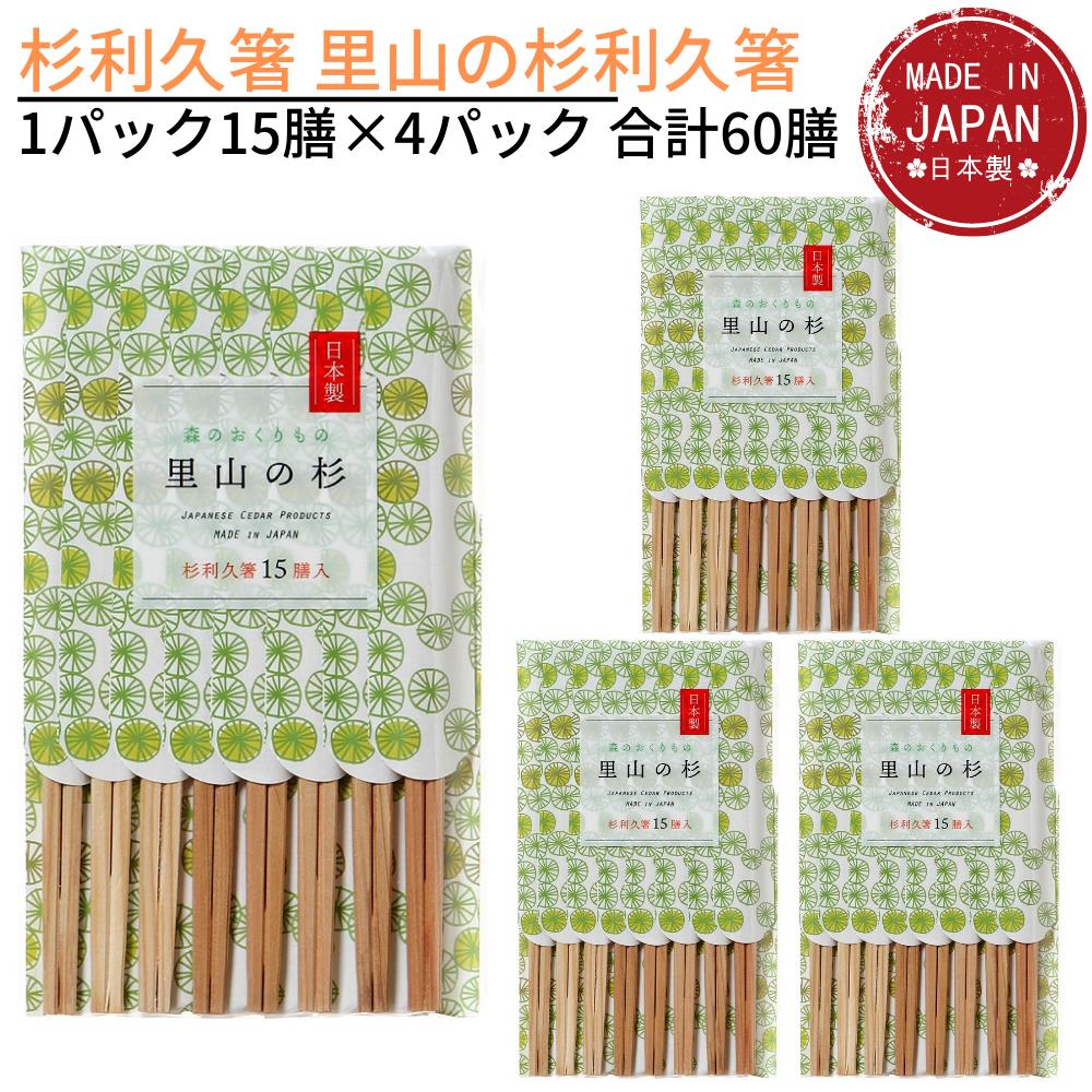 送料無料 国産 杉利久箸 里山の杉利久箸 1パック15膳×4パック 合計60膳|間伐材 使用 杉 割り箸 国産 割り箸 わりばし 割りばし 割箸 使い捨て 箸 おはし 日本製 すぎ 安心 安全 made in japan