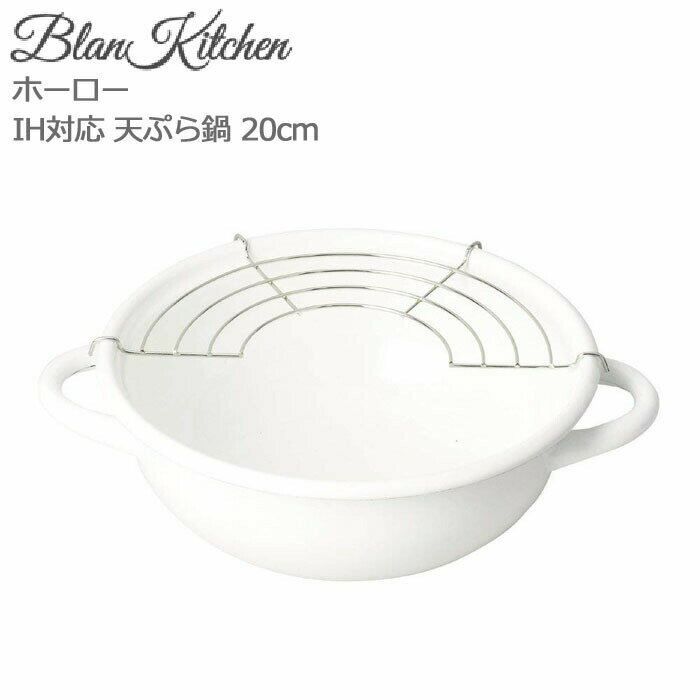 ブランキッチン 天ぷら鍋 ホーロー 20cm HB-3677 両手鍋 揚げ網付き IH対応 ガス火対応 揚げ物鍋 天婦羅鍋 ホーロー鍋 調理器具 パール