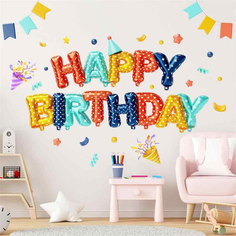 Hikosiya ウォールステッカー かわいい 誕生日 Happy Birthday 風船 旗 金色 剥がせるシール インテリア 幼稚園 保育園 子供部屋 ステッカー DIY ウォールデコ ウォールペーパー 壁紙 PVC素材 生活防