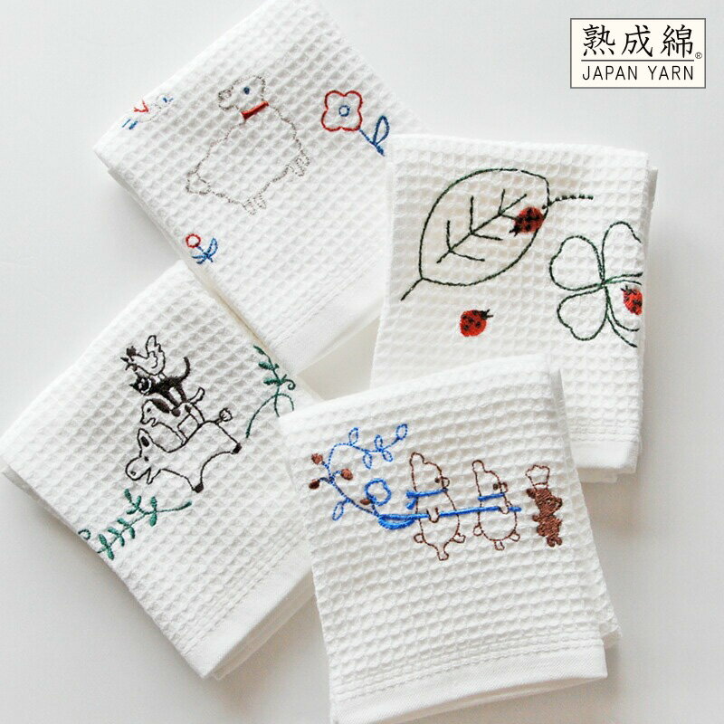 【ふるさと納税】シンジカトウ「ふきぴか キッチンタオル(刺繍)」セット ※ ハンドタオル 薄手 ワッフル ホワイト 吸水力 抗菌