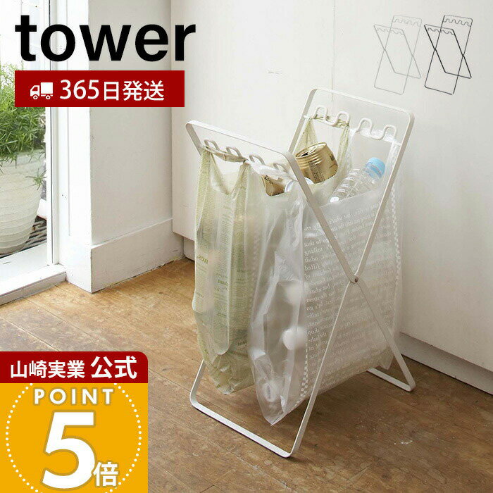 【365日出荷】山崎実業 レジ袋スタンド タワー tower 公式 ダストスタンド ゴミ箱 レジ袋スタンド 折りたたみ ダストワゴン スチール 分別 コンパクト キッチン収納 ホワイト ブラック 6340 6341 yamazaki