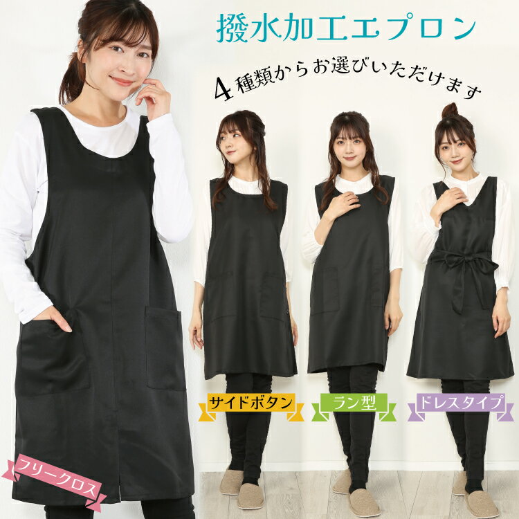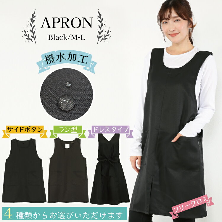 エプロン 撥水 かぶるだけ おしゃれ かぶり カフェ かわいい 軽い ガーデニング 無地 ブラック レディース 黒エプロン バッククロス ラン型 サイドボタン ドレスタイプ 保育士 フォーマル M〜L 3L~4L 大きいサイズ ポリエステル100% sha005 sha006 sha007 sha004all