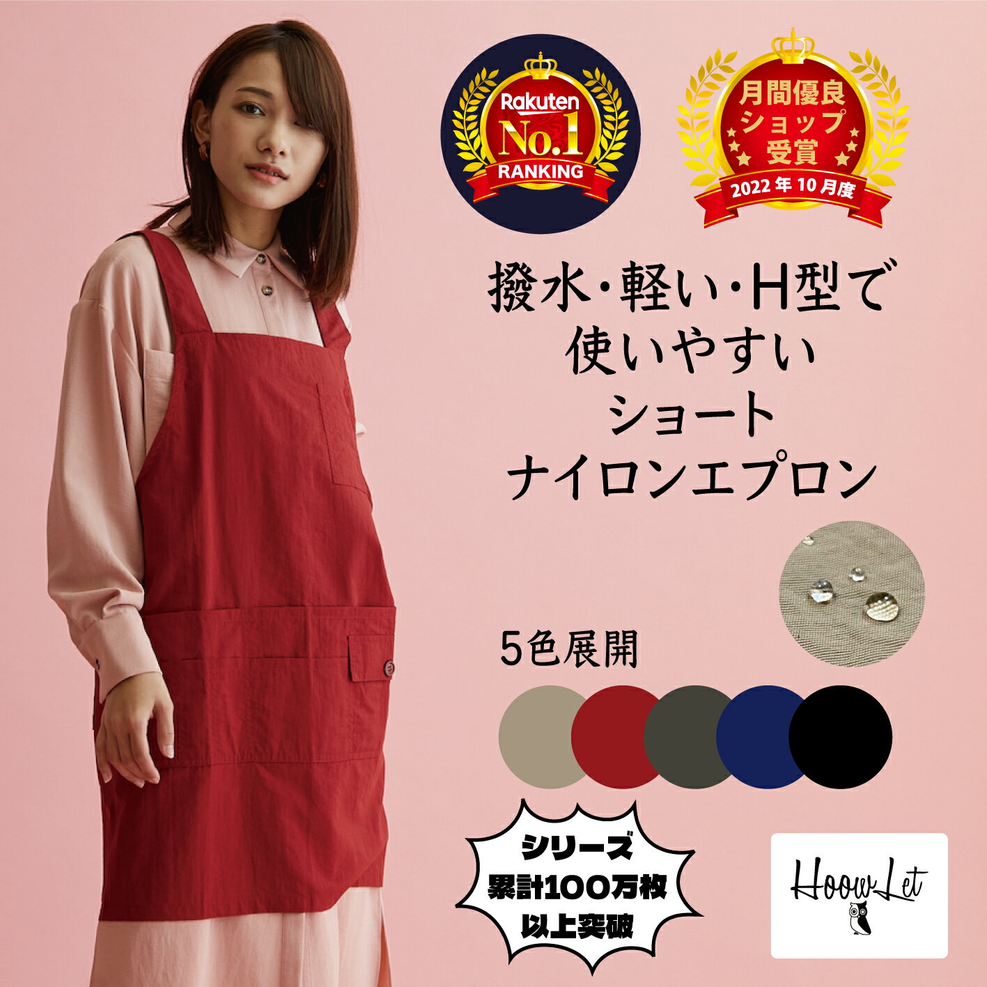 \送料無料!月間優良受賞店/ エプロン かぶるだけ h型 撥水 軽量 ワッシャー ショート丈 軽い 肩が凝らない 速乾 ポケットたくさん 保育士 トリマー 美容師 チュニック おしゃれ かわいい シンプル メンズ レディース ブラック 黒 シワ加工 男女兼用 ナイロン