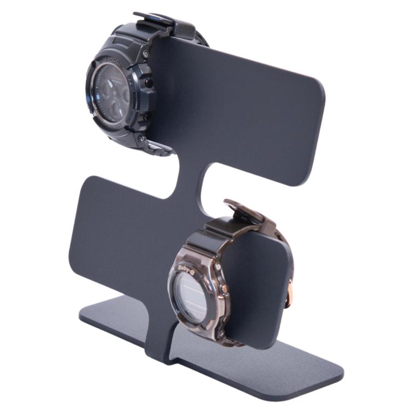 【日本の鉄職人仕立て】 MagoroLabo 腕時計 スタンド 1本 【日本製】 御洒落 ウォッチスタンド アイアン 黒 TETUTO ML-169【シンプルアートに、美しく暮らす。】シンプルの中に、アートを感じるミニマルなデザイン。厚い鉄が放つ重厚感は、まるでカフェのような落ち着きを感じさせてくれます。【デザイン】上下のシンプルなスクエアを、細線でつないだフォルムがアートな、腕時計置き。大切な腕時計1本を『置くだけ』で、落ち着いた、おしゃれな空間になります。【機能性】(1)スッと1秒で時計を置けます。ベルトを外す手間がかからず、時計を前から置くだけなので、使いやすいデザインです。(2)全周に巻かれた厚み・耐老化・耐候性に優れたゴムスポンジで、ベルトまでもが傷付きにくいです。日本製を採用しておりますので、品質も良いです。24/6/15追記:従来のゴムを使用した写真がありますが、現在は全周に巻かれたゴムクッションに改良しております。(3)幅6cm、奥行7.5cmのスリムなボディなので、どこでも設置できて、卓上を広くご使用頂けます。(4)10cmの高さがあるので、ベルトが下に触れて傷つきません。【信頼の日本製】国際品質規格認証工場のたしかな職人技で、1mm/1°以下までこだわります。極細凹凸塗装を施した後、180℃の窯で焼き上げるから、上質なくすみを放つ。角は丁寧に手作業で削るから、手に馴染む丸みを帯びる。いつまでも見ていたい、触れていたい。そんな鉄のある暮らしを。心を込めて。【仕様】サイズ:幅60mm×奥行75mm×高さ100mm時計置き部分40mm×40mm素材:スチール、ゴムスポンジ仕上げ:粉体塗装(+極細凹凸くすみ加工)生産国:日本