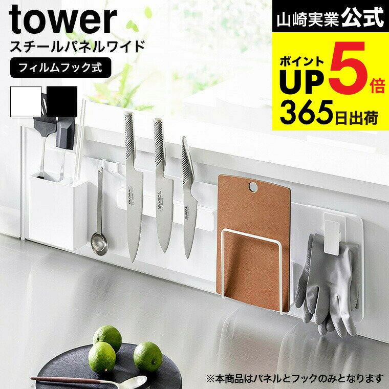 (土・日発送可) [ フィルムフックスチールパネル タワー ワイド ] 山崎実業 公式 tower 1512 1513 ホワイト ブラック / 幅80cm フック付き キッチンツール 調理器具 マグネット 浮かせる収納 タワーシリーズ yamazaki JGS 最強配送 dej cpj 送料無料