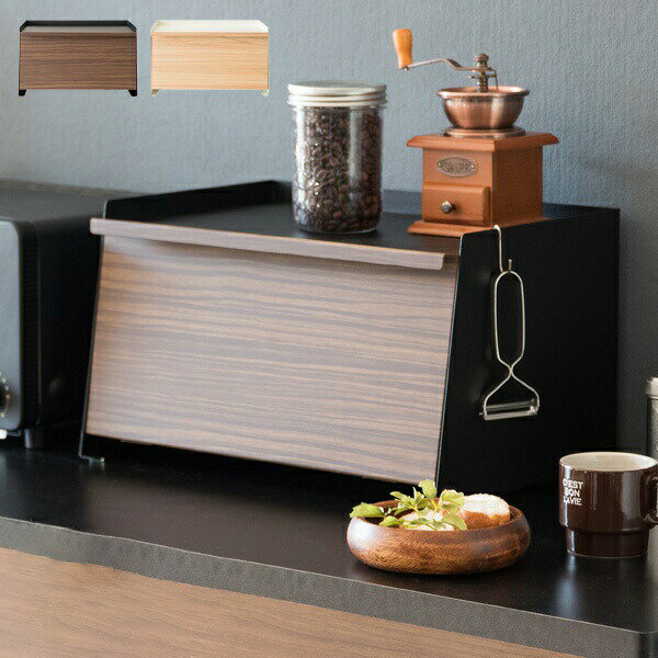 ブレッドケース パンケース コンパクト スリム 木目 小さめ 白 北欧 おしゃれ 完成品 磁石 扉付き キッチン収納 薄型 カウンター上 収納 キッチン 調味料 マグネット スチール 目隠し コーヒー ワイド 横長 小さい ミニ