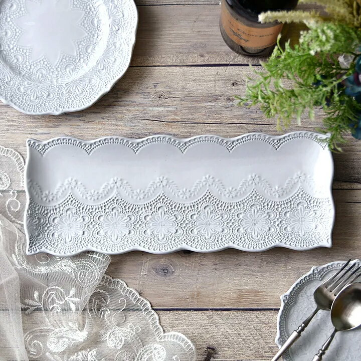 メルレット ホワイトレース レクタングルプレートラ・セラミカ イタリア ハンドメイド カフェ シンプル アンティーク シャビー シャビーシック ギフト プレゼント おしゃれ かわいい 洋食器 皿 長方形 横長 陶器 北欧 食器 送料無料RELC123