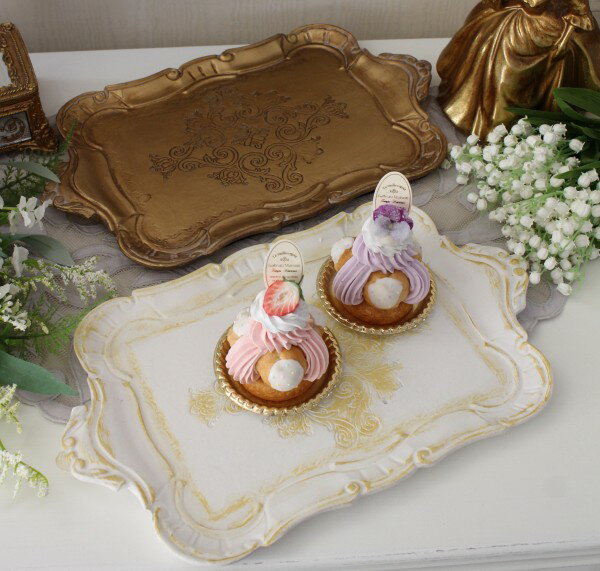(sale30) ディスプレイトレー トレー 小物置き レクトトレイ ハンドルトレー アクセサリートレイ 横長(ホワイト099 ゴールド100) フレンチトレー アンティーク アンティーク調 雑貨 姫系 輸入雑貨 シャビーシック 可愛い おしゃれ