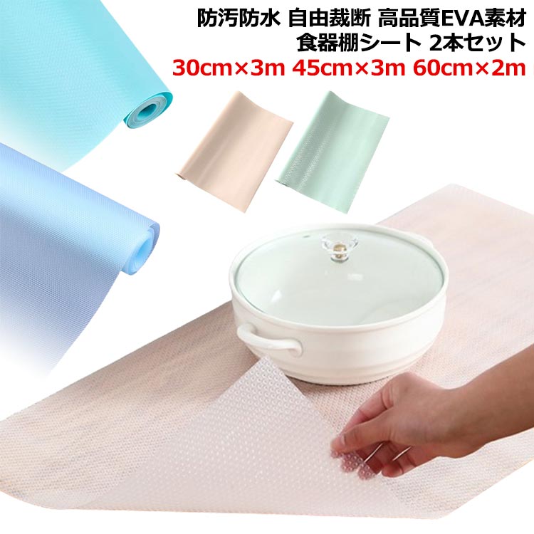 防汚防水 自由裁断 高品質EVA素材食器棚シート 2本セット 30cm×3m 45cm×3m 60cm×2m優れたEVAビニル素材で作られ、非粘着性で耐久性があり、臭いがありません。安全素材で食品に直接触れても安心です。お皿やコツプはもちろんシート自体も滑りにくい。食器棚の棚板に敷くだけて、食器の防止、棚のキズ防止になります。裏面もずれにくい仕様なので、物を取り出すたびずれるストレスもありません。両面とも非粘着性のため、糊残りの心配もありません。キズ・汚れを防止し、ソフトなクッション性でグラス食器やなどの収納物を守ります。シンプルな半透明タイプもあるので敷いていてもごちゃごちゃせずにスッキリと見えるので、雰囲気を壊さずに敷けます。表面は汚れても中性石鹸と湿らせた布またはスポンジでライナーの汚れを簡単に拭き取り、すぐに乾かすことができます。サイズはハサミなどで自由にカットできます。広範囲にわたって汚れてしまったときは直接水洗いができるので、繰り返し長くお使いいただけます。 サイズ 2本セット(30cm×3m) 2本セット(45cm×3m) 2本セット(60cm×2m) サイズについての説明 ※商品のサイズは手作業で測定させて頂いておりますので、若干の誤差があります。 素材 EVA 色 半透明ホワイト1 半透明ホワイト2 半透明ホワイト3 半透明ブルー 半透明グリーン 半透明ピンク ベージュ グレー スモーキーピンク ライトグリーン ピンク ブルー グリーン 半透明ブラック 備考 ●サイズ詳細等の測り方はスタッフ間で統一、徹底はしておりますが、実寸は商品によって若干の誤差(1cm~3cm )がある場合がございますので、予めご了承ください。 ●製造ロットにより、細部形状の違いや、同色でも色味に多少の誤差が生じます。 ●パッケージは改良のため予告なく仕様を変更する場合があります。 ▼商品の色は、撮影時の光や、お客様のモニターの色具合などにより、実際の商品と異なる場合がございます。あらかじめ、ご了承ください。 ▼生地の特性上、やや匂いが強く感じられるものもございます。数日のご使用や陰干しなどで気になる匂いはほとんど感じられなくなります。 ▼同じ商品でも生産時期により形やサイズ、カラーに多少の誤差が生じる場合もございます。 ▼他店舗でも在庫を共有して販売をしている為、受注後欠品となる場合もございます。予め、ご了承お願い申し上げます。 ▼出荷前に全て検品を行っておりますが、万が一商品に不具合があった場合は、お問い合わせフォームまたはメールよりご連絡頂けます様お願い申し上げます。速やかに対応致しますのでご安心ください。