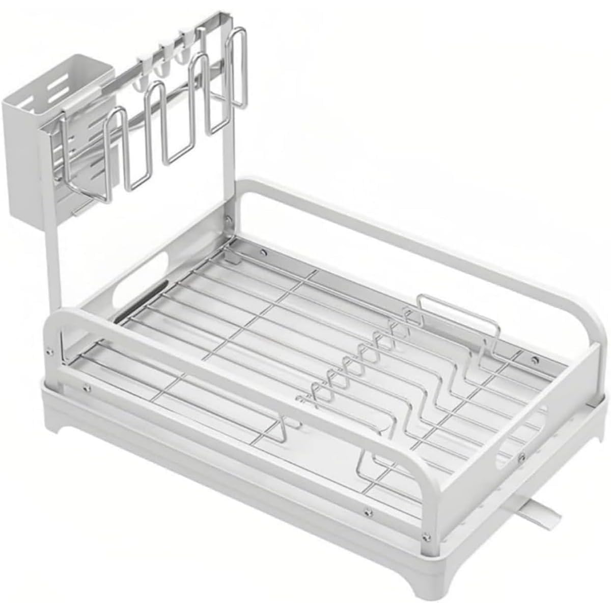 水切りラック水切りカゴ自動排水ラックキッチン収納食器収納箸置きキッチン物干しラッ ク水切りラック流し横食器収納ラック (ホワイト,42.5*30.5*34.5 cm)
