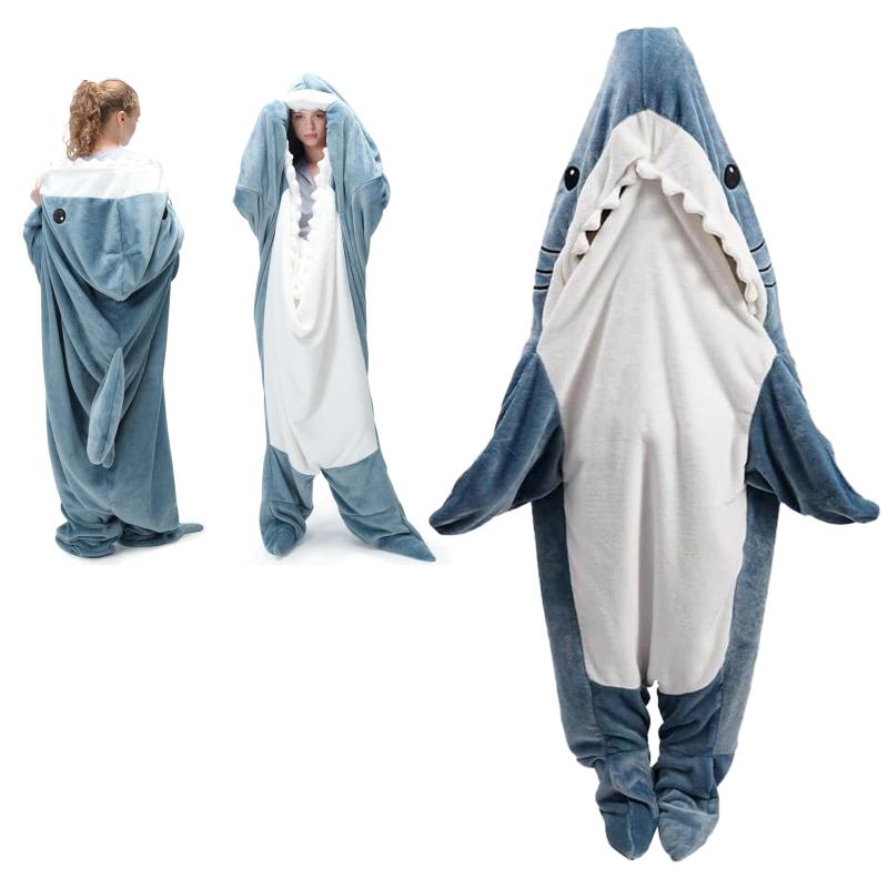 [Happy mono] サメ パジャマ 着る毛布 サメパジャマ サメ 寝袋 サメ 着ぐるみ 大人 着るブランケット きぐるみパジャマ 着る毛布