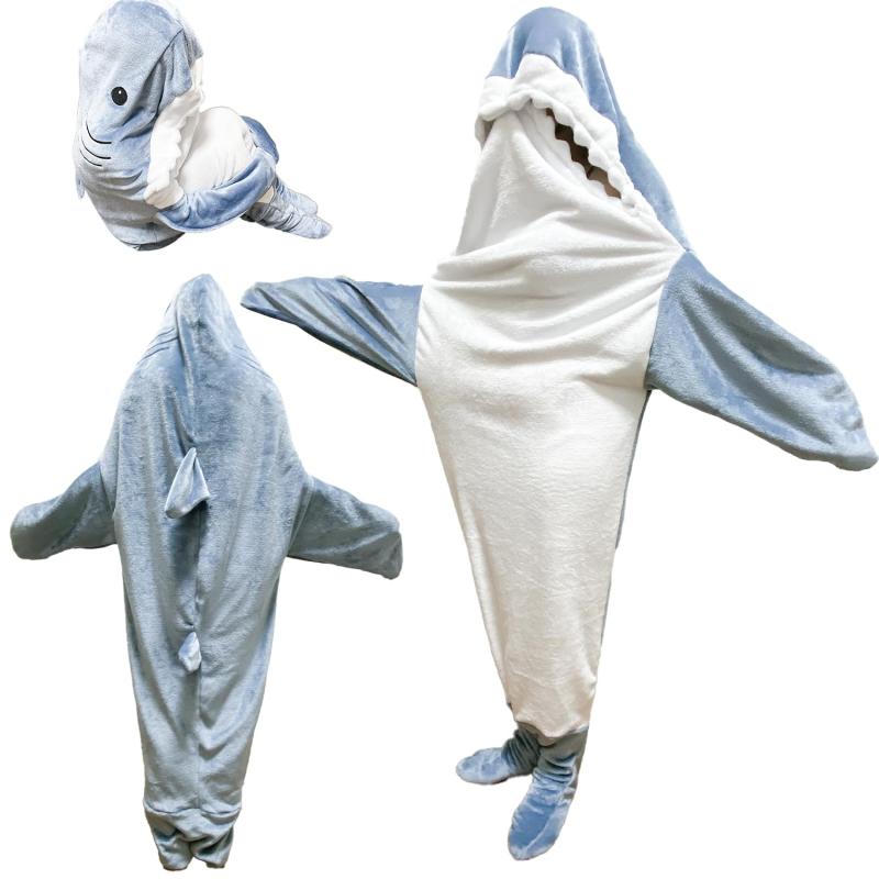 シャークブランケット サメ寝袋 フランネル サメブランケット サメ 着る毛布 きぐるみ パジャマ 大人用 子供用 かわいいふわふわ おしゃれ 暖かい 防寒 お昼寝毛布 冷房対策 フランネル 女