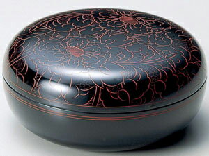 【越前漆器】 朱牡丹彫 菓子器 黒内朱 ●お祝い返し・結婚祝い・内祝いにおすすめ/初節句お返し・漆塗り・粗品・贈り物・菓子・スイーツ