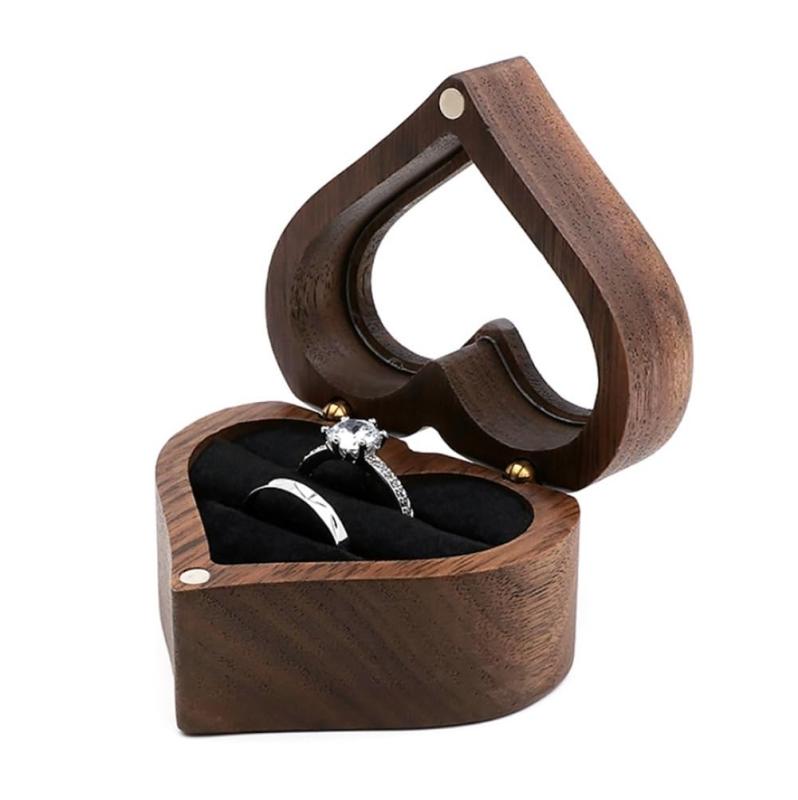 DIFEIUKI ハート型 指輪ケース リングケース 木製 ミニアクセサリーケース 結婚指輪 小物入れ 携帯用 プロポーズ 婚約 記念日 バレンタインデー 誕生日 贈り物 ギフト