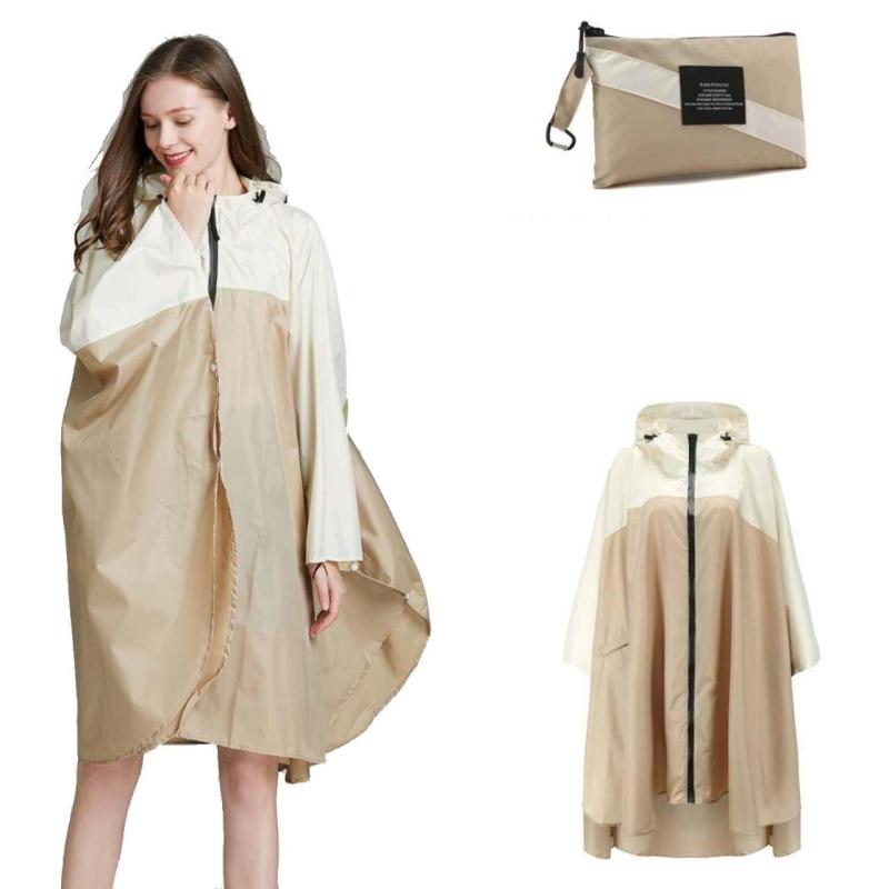 [BeeChip] レインポンチョ レディース【軽量撥水・おしゃれ配色デザイン】ポンチョ レインコート 自転車用 かっぱ 雨具 ポンチョ UVカット 防水レインウェア 携帯便利 通勤通学 アウトドア対✅【大人可愛い配色デザインのレインポンチョ】雨の日でもおしゃれを楽しめる、レディース向けレインポンチョです。ベージュ×グリーン、グレー×ブルーの2色展開で、カジュアルにもアウトドアにも合わせやすい。シンプルながらセンスの光る配色で、通勤・通学にもぴったりのかっぱレディースアイテムです。✅【軽量&コンパクト収納で携帯便利】わずか280gの超軽量設計で、使わない時は付属の収納袋に折りたたんでコンパクトに収納可能。バックやリュックに入れてもかさばらず、突然の雨にも安心。自転車用レインコートとしても人気で、アウトドア・旅行・フェスにも大活躍します。✅【撥水加工&防水PUコーティング】高密度210Tポリエステル生地にPU防水加工を施し、優れた撥水性と防風性を実現。大雨の日でもしっかり雨を弾き、内側のムレを防ぐ快適な着心地をキープ。表面は汚れにくく、サッと拭くだけで簡単にお手入れ可能です。✅【自転車対応・リュック対応設計】背面に余裕を持たせたデザインで、リュックを背負ったままでも着用OK。サイドスリット付きで自転車の乗り降りもスムーズ。調節可能な帽子のドローストリングとツバ付きフードで、顔周りの雨も防ぎ視界も確保できます。✅【UVカット&オールシーズン対応】春夏秋冬使える万能レインウェア。雨具としての機能だけでなく、紫外線対策にも効果的なUVカット仕様で、晴雨兼用ポンチョとして使えます。通勤・通学・アウトドア・フェス・釣り・登山など、様々なシーンで重宝するrain coat for womenです。