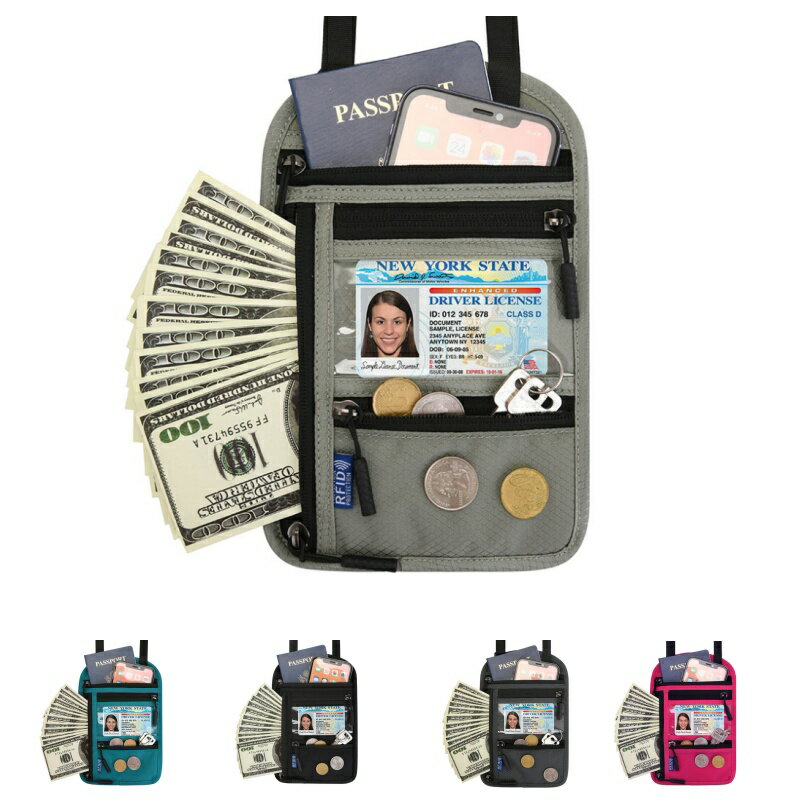 パスポートケース 首下げ RFID 多機能 大容量 スキミング防止 パスポートカバー 軽量 海外旅行 便利グッズ 通帳ケース 航空券 紙幣 カード 小銭 ペン 鍵 スマホ 首掛け ストラップ調節可 パスポートバッグ 男女兼用 ローズレッド 海外チケッ ト証明書保護カバー