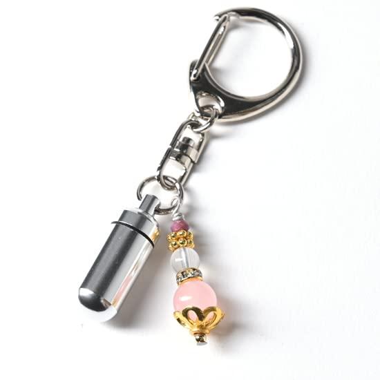 遺骨カプセル Hand Memorial HITOE(ひとえ)手元供養 遺骨入れ 遺骨キーホルダー メモリアル【犬・猫・ペットの遺骨も納まる】(8月誕生色)ピンク