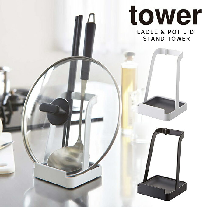 お玉&鍋蓋スタンド タワー tower / 山崎実業 YAMAZAKI まな板スタンド 鍋蓋 お玉 さいばし まな板 スタンド キッチンツールスタンド マルチスタンド 台所用品 キッチン 便利 ブックスタンド レシピスタンド 省スペース 白 黒 シンプル