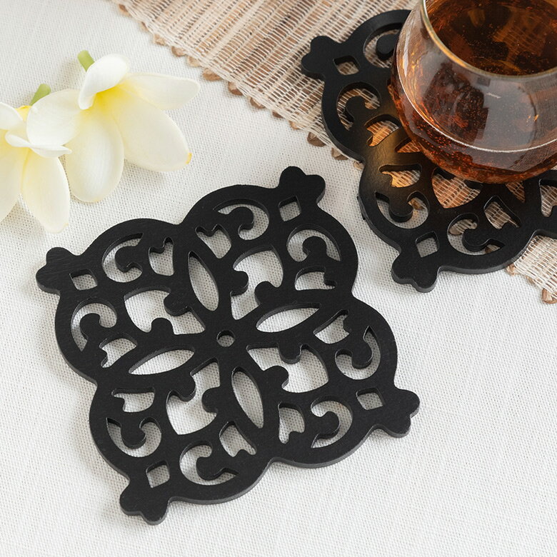 【最大2000円クーポン】 オリエンタルモチーフの木製コースター MULIA ムリア 木彫り 正方形 四角形 四角いコースター おうちカフェ キッチン雑貨 モダン おしゃれ かわいい ナチュラル ソーサー 受け皿 雑貨 アジアン雑貨アジア工房 メール便対応[11384]