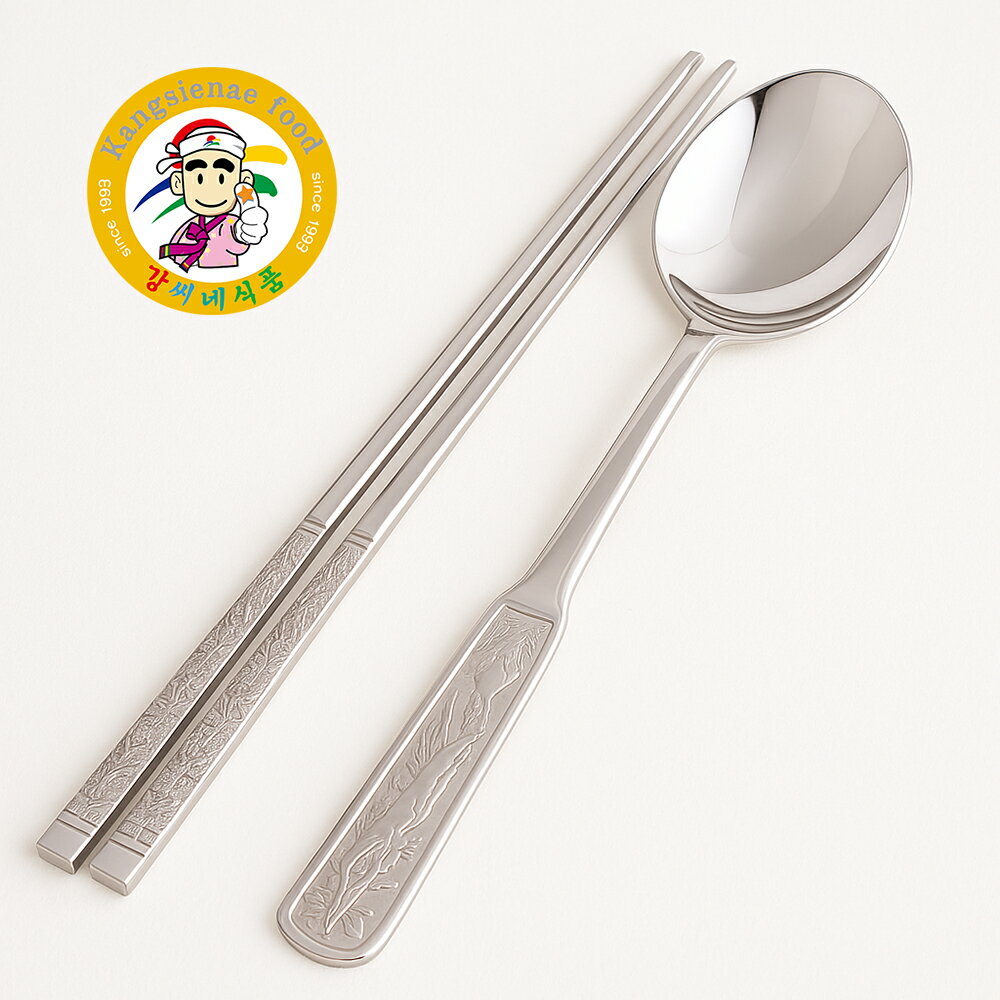 韓国伝統スプーンセット 長柄 スープ/クッパ/ビビンバ用 韓国食器 韓国雑貨 ※柄は変更となる場合があります【カンシネ食品】