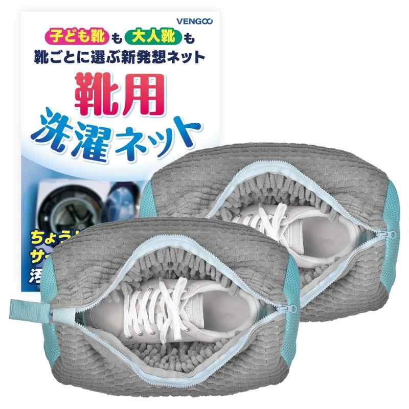 ◆商品名:靴 洗濯ネット 靴用洗濯ネット 靴洗いネット ズックリーンネット 【洗濯検証済/他サイズあり】 片足用 複数洗い可 スニーカー 上履き VENGOO Mサイズ 2個?【3サイズ展開の洗濯ネット】 靴のサイズに合った洗濯ネットを使うことで、汚れ落ちが格段にアップ! VENGOOの靴用洗濯ネットは、スニーカーや上履きなど様々な靴に対応するS・M・Lの3サイズをご用意。 ネットが大きすぎるとブラシやメッシュに靴がしっかり当たらず洗浄力が低下します。 逆に小さすぎると靴が動かず摩擦が生まれにくくなります。 靴にぴったり合ったサイズを選ぶことで、適度な摩擦とブラシの接触で洗浄力が最大化されます。?【手洗い不要】 「靴の手洗いが面倒…」そんな方におすすめ! 靴をネットに入れて洗濯機にポンと入れるだけ。 ネットが靴をやさしく包み、回転中の擦れ・引っかかり・型崩れ・色移り・破れなどを防ぎます。 ※スニーカー・上履き・運動靴などに最適!? 【内部ブラシ付きクッション構造】 内部にはマイクロファイバー製の高密度ブラシを内蔵。 ネットに片足ずつ入れて洗うことで、適度な摩擦とブラシの力で汚れをしっかり落とします。 1ネット1個(片足)ずつ洗う設計により、通常の洗濯ネットや複数洗いよりも洗浄力が向上。 ※複数の靴も入れられますが、洗浄力はやや低下します。?【ダブルメッシュ構造】 外側は粗めのメッシュで水や洗剤の通りが良く、内側は柔らかくクッション性のある素材。 効率的に洗浄しながら、靴や洗濯機を傷つけにくい設計です。?【使いやすさと安心設計】 ファスナーは飛び出し防止の保護バンド付きで安心。 吊り下げループ付きで洗濯後の干しやすい。 ファスナーを最後まで閉じ、スライダーを保護バンドにしっかり収めてから洗濯してください。?【性能検査済み】 第三者機関による検証で、通常の洗濯ネットや複数洗いより高い洗浄力が実証されました。 靴のサイズに合ったネットを使うことが、洗浄力アップのポイントです。?Sサイズ:直径15×縦29cm(子ども用など)、Mサイズ:直径15×縦34cm(一般的なスニーカー向け)、Lサイズ:直径19×縦39cm(大きめの靴や2足洗い用)?【セット内容】靴用洗濯ネット ×1、日本語取扱説明書 ×1靴用洗濯ネット
