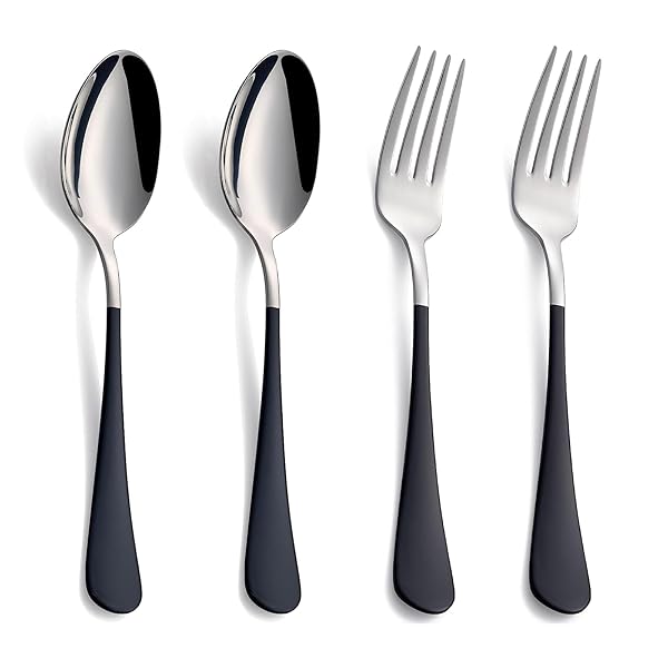 Oishia ディナースプーン ディナーフォーク 4本 2名様用 スプーン フォーク セット ステンレス鋼 ミラー仕上げ 食洗器対応 ブラック