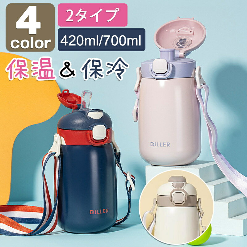 \2024最新販売/ステンレスボトル おしゃれ ミニ 水筒 420ml 700ml 子供 キッズ スマート 真空断熱 マグボトル ワンタッチ シンプル コンパクト スリム 直飲み ストロー付き ロック付き 軽量 保温水筒 携帯便利 ハイキング プレゼント 入学 入園祝い ギフト 記念日