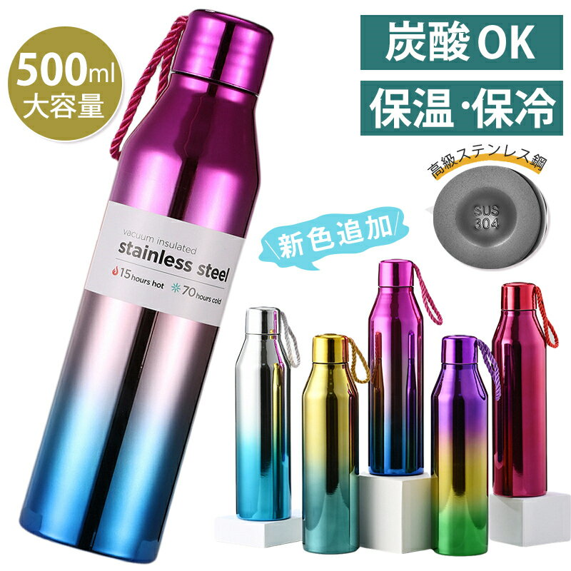 \2024最新販売/【炭酸 対応】ステンレスボトル 水筒 保温保冷 500ml 大容量 アウトドア 直飲み 炭酸対応ボトル 真空断熱タンブラー 携帯 おしゃれ 真空二重構造 ステンレスボトル 男の子 女の子 子供 大人 魔法瓶 記念日 母の日 プレゼント ウォーターボトル ギフト