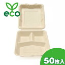 ¥ 未晒し バガス フードパック ランチボックス バガス(さとうきび)エコフード容器 250x250mm 3仕切りランチボックス TM-B106 50個×1パック