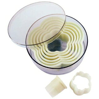 【仕様】(口金サイズ)直径×高さ:22mm×30mm質量:0.022kgセット内容:花6切・花8切・丸型・貝型・ばら型・葉型・りぼん型・ネジ受け
