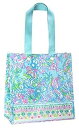リリーピュリッツァー ブルー/グリーン マーケット ショッパーバッグ、再利用可能な食料品トート、快適なショルダーストラップ付き、アクア ラ ビスタ Lilly Pulitzer Blue/Green Market Shopper Bag, Reusable Grocery Tote with Comfortable Shoulder S