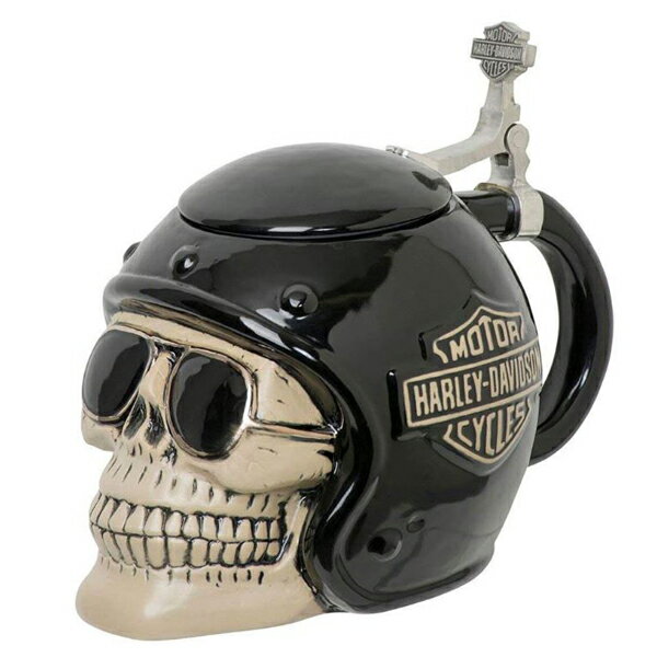 【ハーレーダビッドソン】【ビールジョッキ】バー&シールド ロゴ スカル ライダー ステイン 陶器製 ビアジョッキ【Harley-Davidson 食器 コップ 陶器 ドクロ 髑髏 ヘルメット サングラス ホワイト ブラック 】