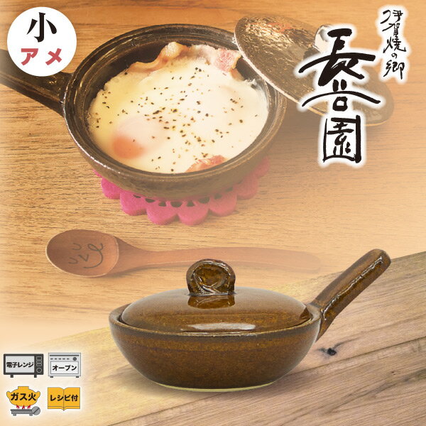 電子レンジ・オーブン・直火調理のほか、器としても使えます。カラーバリエーションも豊富で、ギフトにも人気です♪ ■商品詳細 大きさ:径10.5cm×高さ6cm×幅14cm(取手含) 内容量:60ml 重さ:0.2kg 日本製(伊賀焼) オーブン対応:○ 電子レンジ対応:○ レシピ付