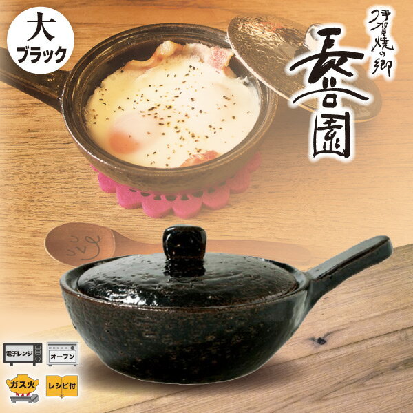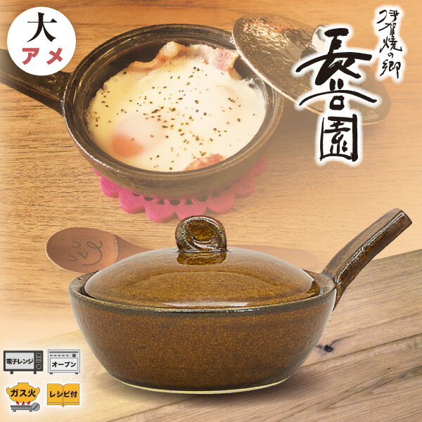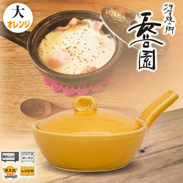 電子レンジ・オーブン・直火調理のほか、器としても使えます。カラーバリエーションも豊富で、ギフトにも人気です♪ ■商品詳細 大きさ:径12cm×高さ7cm×幅16cm(取手含) 内容量:130ml 重さ:0.3kg 日本製(伊賀焼) オーブン対応:○ 電子レンジ対応:○ レシピ付