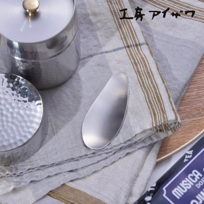 シンプルで扱いやすい茶さじです。フラットなデザインのモデルとなります。 サイズ:長さ83mm、幅35mm 材質:18-8ステンレス 生産者:工房アイザワ 生産国:日本