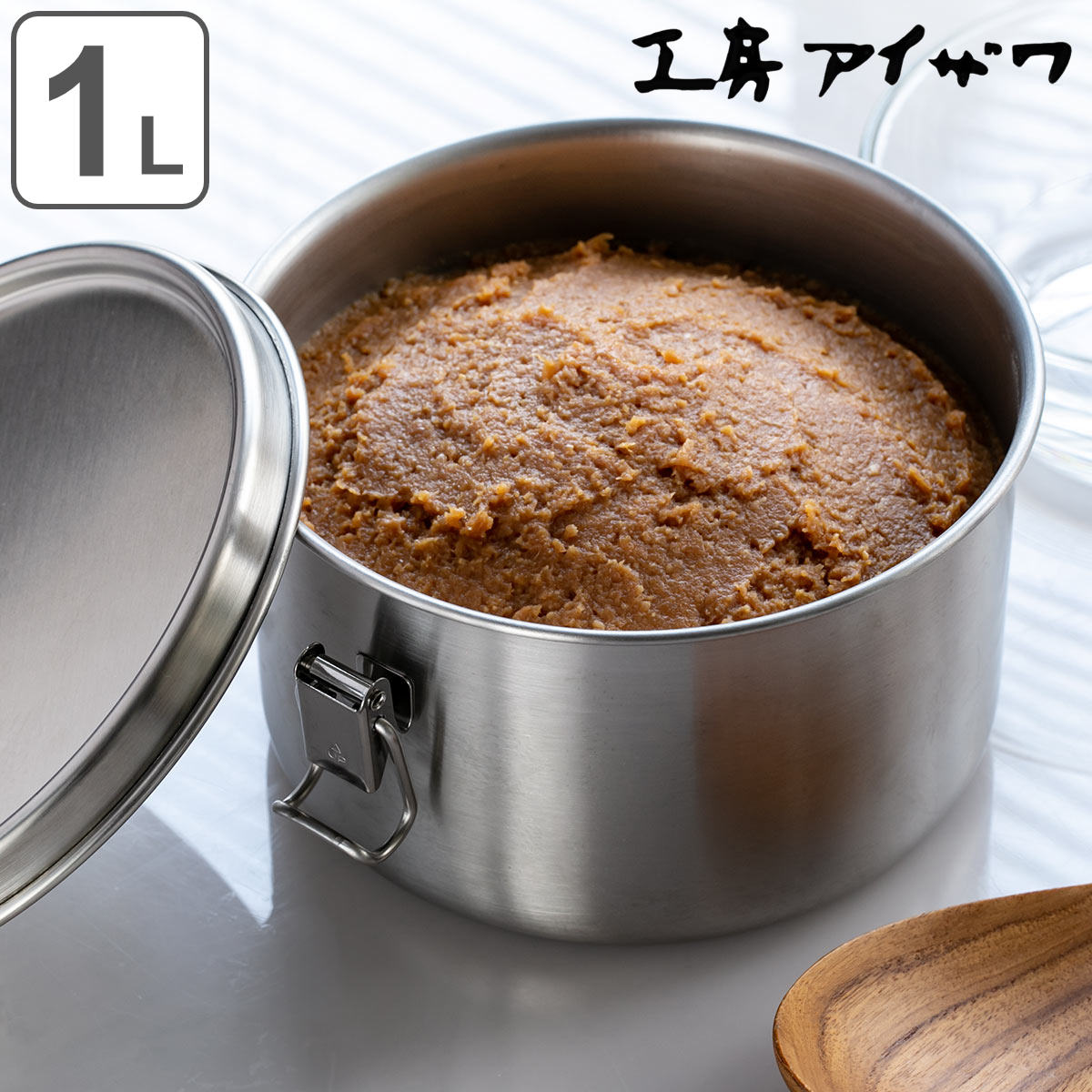 工房アイザワ 保存容器 1L UTILE 丸容器深型 止金付き L ( aizawa 日本製 ステンレス 弁当箱 お弁当箱 食品保存 保存 容器 丸型 1000ml ランチボックス 下ごしらえ 作り置き アイザワ 美しい 高級感 高品質 シンプル )