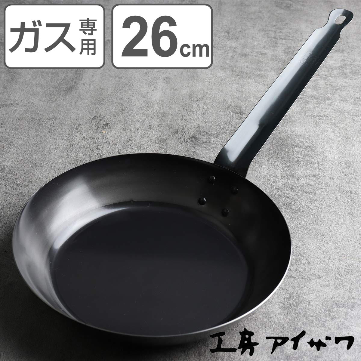 工房アイザワ ブラックピーマン フライパン 26cm ( aizawa 鉄 ガス火専用 日本製 鉄フライパン 炒め鍋 いため鍋 鉄のフライパン 浅型フライパン アイザワ ガス火対応 26センチ 鉄製 鉄製調理器具 高品質 シンプル )