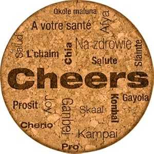 Premium Quality Laser Art Engraved Absorbent Cork Drink Coaster by GrafixMat, Natural Cork, Dual Layer Won t Chip Break, Cushion Feet, Color Image & Story on Back, Cheers (Qty of 1)
